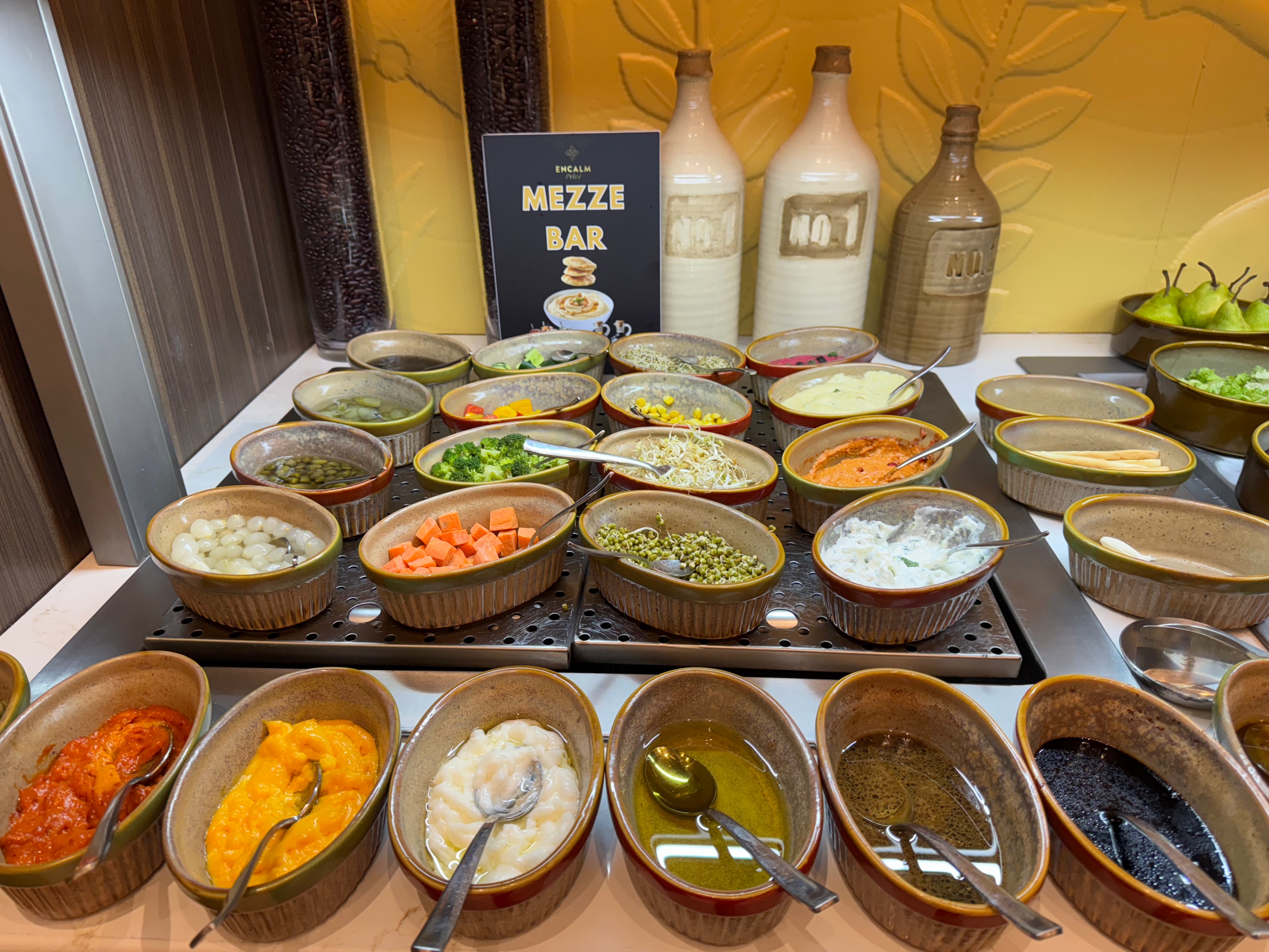 Aika on mennyt niin nopeasti, että kello on kohta puoli kolme, ja sitten on enää puoli tuntia, kun pääsee koneeseen. Kävin äsken tutkailemassa loungen ruokatarjontaa, ja totesin sen varsin hyväksi. Tarjolla oli intialaisia herkkuja laidasta laitaan, mutta ilahduttavin näky oli kuitenkin tämä: